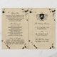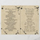 Estes programas dobrados são perfeitos para qualquer casal planejando uma celebração romântica de casamento vintage. O design apresenta um fundo antigo com manchas de tinta preta e uma crista monográfica real. O design simples pode ser personalizado para se adequar ao seu evento especial e será a ordem de serviço perfeita para qualquer partido temático vitoriano, incluindo chás de panela, noivados, chás de casamento, festas de aniversário e muito, muito mais.