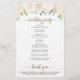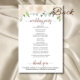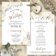 Estes programas de casamento são elegantes e saborosos, enquanto ainda são favoráveis ao orçamento. A design apresenta um bando de rosas e flores pintados manualmente em tons de champanhe, pincel e pêssego pálido cercado de folhas de eucalipto e folhagem de jardim. A tipografia apresenta uma caligrafia antiga em script, e há espaço para detalhes sobre a cerimônia, a festa noiva e um obrigado curto para você.
