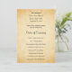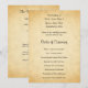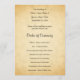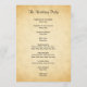 Um design de programa de casamento com um design de fundo impresso no estilo de papel antigo, projetado para parecer semelhante a um padrão de pergaminho falso. O fundo é um impressão de padrão em cores bege amareladas / bronzeadas. Há texto na moda preto que pode ser personalizado.