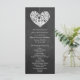 Estas modelos do programa de casamento apresentam uma árvore romântica pendurada, e em breve serão marido e mulher, que está gravada em forma de coração. O fundo do efeito de quadro negro torna estes programas perfeitos para qualquer casal planejando um casamento moderno chic. Esses programas podem ser facilmente personalizados para atender às suas necessidades de celebração e também trabalharão como excelente para cerimônias de renovação de vogais, ordem de casamentos de serviços e muito, muito mais.