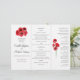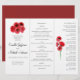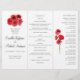Um triplo programa de casamento com papoilas vermelhas com aquarela em dois buquês diferentes. Design floral elegante e colorido vibrante sobre fundo branco, com um dorso vermelho veludo. O plano de fundo é transparente para que possa ser alterado e personalizado. Observe que a alteração do tipo de papel pode dificultar o dobramento do programa.