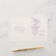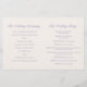 Casal de pássaros bonitos em desenho gráfico de linhagem de gaiola de pássaros aberta pendurada em uma primavera com corações florescente. Design de casamento moderno e fascinante da gaiola de pássaros, papel de carta de casamento romântico. Bonito pastel perde roxo e rosa macio em uma cor de fundo creme. Edite este programa de casamento com seu próprio nome, datas, texto da cerimônia, assistentes de festa de casamento e obrigados. Um programa simples, mas elegante, simplesmente substitua o texto de amostra pelos detalhes de suas informações de casamento e dobre programas ao meio na entrega. Desenho exclusivo e design por Sarah Trett.