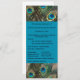O toque artístico desta foto de penas de pavão faz um programa de casamento incrível para o seu casamento temático de pavão. As cores vibrantes dos olhos das penas fazem uma design notável para seus programas personalizados perfeitos para o seu casamento. O sotaque azul é incrível.