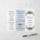 O elegante e moderno programa de casamento floral de meio verão apresenta um buquê de hidrocolorecia e hipnagas de girassol em tons de amarelo, ardósia, azul empoeirado com folhas botânicas verdes e sujas e eucalipto. Por favor, encontre mais designs e variações na minha loja de "blisswedingpaperie". E fique à vontade para me contactar para mais personalizações ou itens correspondentes.
