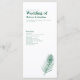O cartão mínimo do Programa de Dia de Casamento de design apresenta uma elegante ilustração de linha de pena de pavão com um tema de cor verde esmeralda. Design tipográfico moderno e limpo, esta peça está pronta para você personalizar com os detalhes do seu dia especial. Parte de uma variedade cada vez maior de artigos de papelaria, por favor, navegue no Emerald Green Peacock Feather Wedding Suite para ver itens correspondentes.