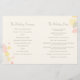 Um belo e simples pessegueiro de coral de cinza quente e um contorno de flores amarelas e um programa de casamento de pétalas de confetes gráficos. Parte do conjunto gráfico moderno de papéis de carta de casamento. Bonito sombras pastel sobre um fundo branco levemente desligado. Edite este programa de casamento com seu próprio nome, datas, texto da cerimônia, assistentes de festa de casamento e obrigados. Um programa simples, mas elegante, simplesmente substitua o texto de amostra pelos detalhes de suas informações de casamento e dobre programas ao meio na entrega. Desenho original e design exclusivo de Sarah Trett.