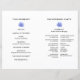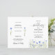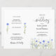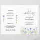 Um prado floral azul de flor silvestre figura neste programa de casamento dobrável - a nossa ilustração de cor d'água única. Projetado para ser impresso em ambos os lados, o cobrir mostra o local enquanto o dentro pode ser editado com a ordem de serviço e a festa de casamento. Parte da nossa coleção de casamentos "O Pé Azul Tangido", A palavra "WEDDING" não é editável.