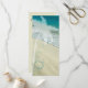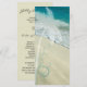 Dê aos seus convidados a ordem da cerimônia de casamento de destino da ilha com o programa de casamento Tropical Beach bonito. Este programa de casamento costeiro costeiro do tema trópico apresenta uma fotografia cênica da turquesa ou do oceano azul aqua em uma margem de areia com uma palmeira branca e um design de espiral teal adornando a esquina.