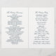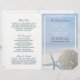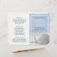 Estes programas dobrados são perfeitos para qualquer casal planejando um casamento elegante na praia. A design apresenta um dólar de areia cremoso e um peixe-estrela azul-claro com um fundo azul esmaecido de praia. A design está acabada com uma delicada borda de areia. O design simples e fresco pode ser personalizado para se adequar ao seu evento especial e será a ordem de serviço perfeita para qualquer evento temático na praia, incluindo chás de panela, noivados, chás de casamento, festas de aniversário e muito, muito mais.