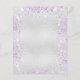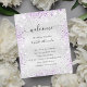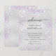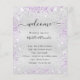 Um programa de casamento moderno e elegante, linha do tempo. Fundo de aspecto fino prateado decorado com pó brilhante prateado roxo e falso. Personalize e adicione seus nomes e detalhes do casamento. Letras pretas coloridas.