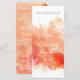 Moderna cerimônia de casamento do recife de coral com abstrato de água salgada e programa de festas com uma pintura de aquarela pintada manualmente com textura em tons de laranja e pêssego de coral, recife de coral em branco e texto em branco e cinza. Este elegante e na moda exótico convite de casamento casual é um modelo perfeito e personalizável para o seu casamento de verão na praia costeira.