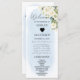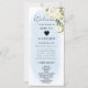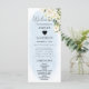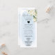 Combine elegância e função com este Cartão de Local do Programa Blue Watercolor e White Rose Wedding. Apresentando um fundo de cor azul-d-água macia e delicados florais brancos, a frente serve como um cartão de nome para seus convidados, enquanto a parte de trás destaca sua linha do tempo da cerimônia de casamento ou eventos chave. Uma maneira perfeita de manter os convidados informados e adicionar um toque coordenado à sua decoração de mesa.