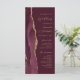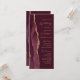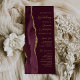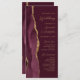 A borda esquerda deste elegante programa de casamento moderno apresenta uma cor-d-água vermelha borrifada, aparada com falsa brilho dourado. O texto personalizável combina um script de caligrafia dourada e sans serif fonts em um fundo burgundy.
