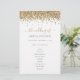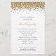 Programa de Casamento de Script Glitter Dourado de Orçamento. Um tamanho maior de 5,5" x 8,5" a um preço orçamentário, em uma elegante estoque LINEN de 110 lb - para uma sensação de luxo pelo valor do excelente, isso é perfeito para convites, menus, programas etc. Esse alternativo de 5,5 x 8,5 pol também está disponível em outras opções de papel. O estoque do cartão SEMI-GLOSS de 110 lb tem aproximadamente a mesma espessura do cartão postal, portanto também funciona bem para convites. O papel FELT de 100 lbs é colorido por buff, NÃO branco, então adiciona um toque rústico. O estoque de papel MATTE de 80 lb é branco brilhante, para impressão nítida, excelente para seus menus e programas, enquanto o papel SATIN de 80 lb é fino e leve, ideal para gabinetes. Estilo de brilho com falso brilho bordeando a parte superior de cada lado. Personalize facilmente o texto de acordo com as suas necessidades.