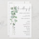 Programa de Casamento de Script Eucalyptus de Orçamento. Tamanho de 5,5" x 8,5" a um preço orçamentário, as folhas Elegante de cor d'água eucalipto estão em cada lado a partir do topo. O cabeçalho principal está em um script na moda set e o resto do texto que você pode personalizar facilmente. Se precisar de assistência para a edição deste design, por favor, envie-me uma mensagem.