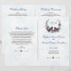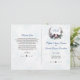 Chic Berries Bullfinch Winter Wreath Wedding Program Romântico Carteira com design de inverno (ramos de abeto, frutos vermelhos e folhagem) com dois pássaros (bulfinch), que abre espaço para as iniciais da noiva e do noivo, tudo sobre fundo branco com flocos de neve esmaecidos. Use a ferramenta Personalizar para adicionar suas informações. Veja, também, minha coleção de celebrações de eventos da vida de inverno.