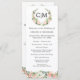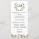 As iniciais do casal de casamento são colocadas dentro de uma coroa aberta no topo deste programa de casamento. Flores cor-de-rosa e brancas criam uma bela coroa e borda inferior. Este programa de casamento faz parte da Coleção de Casamentos Florais Blush Pink e White.