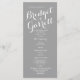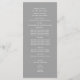 Design de texto moderno em programas de casamento com cartão de rack impresso para cinza com texto branco.