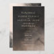 Design de casamento moderno com tipografia contemporânea com detalhes de caligrafia suave em preto sobre fundo de tinta de cor d'água preto escura e marfim.