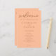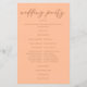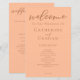 Peach é a nova cor de tendência para eventos de verão. Nosso doce programa de casamento de pêssego apresenta um elegante roteiro marrom-claro para um evento moderado e de tendências à tarde para uma noiva feminina que ama permanecer atual e moderna.