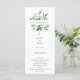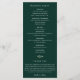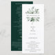 Elegante moldura de greenery em aquarela, programa de casamento. Modelo de lista de texto para ordem de eventos da cerimônia, festa de casamento e nota de agradecimento. Cor de fundo mostrada em verde floresta escuro, pode ser personalizada.