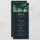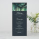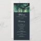 Uma ilustração com uma aquarela esbranquiçada da folhagem esmagadora em verde esmeralda, cintilante com luzes de fadas e poeira mágica, decora esta carta do programa de casamento outono de verão com um tema de floresta encantado. Um elegante cardápio de casamento moderno para um casamento de conto de fadas. Perfeito para noivas que amam o cenário de conto de fadas, a floresta de fadas ou o tema do jardim de fadas e o verde esmeralda.
