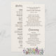 Programa de casamentos desenhado com flores silvestres a aquarelas sobre fundo marfim/creme/branco. Este cartão permite muito espaço para que você adicione todas as informações de que seus convidados precisarão. Entre em contato comigo para obter assistência com as suas personalizações ou para solicitar produtos adicionais de correspondência ou coordenação para o(s) seu(s) evento(s)