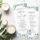 Flores brancas e alegres e folhas verdes de aquarela formam uma bela fronteira nesses bonito programas de casamento florais de primavera. Chic, bela decoração de casamento de jardim com seus detalhes de cerimônia de casamento e festa de noiva nas costas.