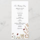 Este programa de cerimônia de casamento maravilhoso e plano é fácil de personalizar para o seu grande dia. Os florais inspirados em boho causam uma impressão dramática. trabalho de arte/gráficos de Julia Dreams Co.