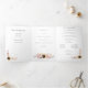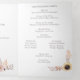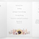 Este triplo cartão do programa de casamento tem bastante espaço para incluir todos os detalhes da cerimônia de casamento e apresenta belas ilustrações de girassóis amarelos ouros e outros florais em pintas e amarelos moles.