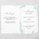 Esta elegante design do programa de cerimônia de núpcias apresenta lindas manchas de aquarelas em tons azuis e verdes e manchas de ouro. Uso de detalhes de tipografia escritos à mão em ouro. Personalizar a formulação em todas as partes. NOTA: esses programas chegam achatados e exigem o dobramento do meio para montagem. O valor padrão do papel é recomendado. Parte da nossa coleção "Airy Blue and Green Watercolor".