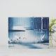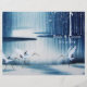 Pintura em folha de uma história de neve do inverno com aurora borealis, um lago, e furos brancos. Egrets representa força, pureza, paciência e vida longa.