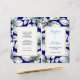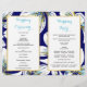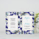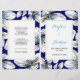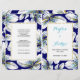 Flores tropicais dobraram o programa de casamento. Este design floral moderno apresenta lindas flores brancas com folha de folha de folha de ouro e detalhes aqua sobre azul marinho. É perfeito para um casamento de verão. Dobre no centro para pegar um programa de casamento duplo. Escolha apenas o tipo de papel de valor.