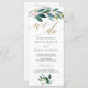 Todos adorarão ler os detalhes do seu casamento com este belo programa de casamento de roteiro de caligrafia. Esta design apresenta uma bela vegetação macia. Edite facilmente com as informações do programa! Perfeito para casamentos interiores e exteriores! Veja mais designs do Garden Greens correspondentes aqui: https://www.zazzle.com/collections/garden_greens-119857166400390261?rf=238534829419020154