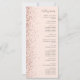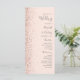 A borda esquerda deste elegante programa de casamento moderno apresenta um rosa dourado faux glitter design. O texto personalizável combina a escrita manual de cinzas de carvão, fontes em copperplate e itálico em um fundo cor-de-rosa pincelado.