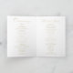 Este elegante programa de casamento dobrado em ouro de caligrafia é perfeito para um casamento rústico. O design simples e na moda apresenta a tipografia de script clássico e rico em ouro. Inclua uma citação ou mensagem curta, ordem de serviço, festa de casamento e obrigado da mensagem.