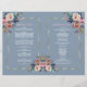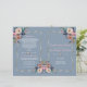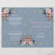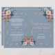Design romântico, elegante, com delicada cor d'água, azul poeirento, buquês de flores rosa, lindo divisor floral, sobre um fundo azul empoeirado. Na parte de trás, um buquê de rosa-névoa azul empoeirado. Use a ferramenta Personalizar para adicionar suas informações. Para obter itens correspondentes, visite minha Coleção de Flores Azuis Douradas.