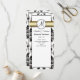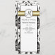 Programas de casamento elegantes e sofisticados em cores de ouro preto e branco e metálico para sua cerimônia de casamento. Modelo do Programa de Casamento com cor damasco preta e branca e cor de sotaque dourada que você pode personalizar com seu monograma, seus nomes, seu programa de casamento e nomes de festas de casamento. Use a frente e o verso para adicionar suas informações sobre a cerimônia de casamento e a festa de casamento. Por Elke Clarke ©2012. Gráficos licenciados.