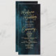 Programa de Casamento Dourado de Cor de Água Azul e Teal com letra de script de pincel de tendência! Veja meu compro para ver a suíte de casamento inteira para este design!