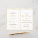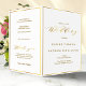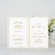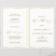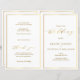 Um programa de casamento elegante e dobrável com uma fronteira falsa de ouro que irá ajustado com muitos temas de casamento. Projetado para ser impresso em ambos os lados e depois dobrado em casa, o cobrir mostra o local enquanto o dentro pode ser editado com a ordem de serviço e festa de casamento. Este design moderno com bordas de ouro é adequado para um serviço de memorial religioso da igreja ou para uma cerimônia humanista. O efeito folha de ouro FAUX é impresso e NÃO é metálico.