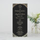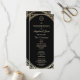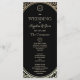 Elegante, programa de núpcias negras, com o quadro de arte-deco de ouro floral e monograma no topo.