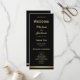 Um moderno programa de casamento preto e ouro.