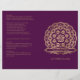 Este elegante design, chamado Casamento Indiano Purple e Dourado Mandala, tem um fundo roxo. Na frente há uma design de mandala de ouro com Lord Genesha no centro para afastar quaisquer obstáculos. Em direção à parte inferior há um design de banner para realçar o nome do casal em ouro. O fundo tem um fundo roxo com o seu texto em ouro. Este conjunto tem convites, cartões salve a data, cartões de resposta, cartas de agradecimento, cartões de mesa, rótulos de vinho, programas de casamento, e muito mais peças de papelaria de casamento, favores e presentes para coordenar. Todos os elementos são impressos nos nossos produtos de alta qualidade, não incluem ouro real, joias, gravuras ou outros elementos têxteis. Todos os designs são copyright Noteable Express, Inc. Todos os direitos reservados.