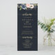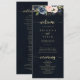 Este programa de casamento de ouro floral com marinho é perfeito para um casamento rústico. A design apresenta belas flores azuis escuras, azuis, marinhos, rosa, pinceladas, douradas e folhagem verde pintada à mão.