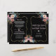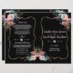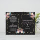 Design romântico, elegante, com delicada cor d'água, azul poeirento, buquês de flores rosa, lindo divisor floral, sobre fundo negro, para um olhar contrastante. Use a ferramenta Personalizar para adicionar suas informações. Para obter itens correspondentes, visite minha Coleção de Flores Azuis Douradas.