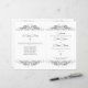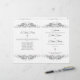 © Socialite Designs Inc. Este programa de casamento clássico e elegante tem um belo floreio preto em um fundo branco e um design de cruz. Combine este programa de casamento elegante com a coleção correspondente de produtos.