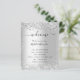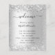 Um programa de casamento moderno e elegante, linha do tempo. Fundo metálico de aspecto fino prateado decorado com pó falso de cinza prateada. Personalize e adicione seus nomes e detalhes do casamento. Letras pretas coloridas. Se você tiver mais texto, é possível reduzir o espaço na linha.