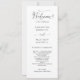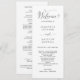 Bem-vindos aos seus convidados com este elegante programa de casamento com detalhes delicados de caligrafia. Design em branco e preto. Adicione seus próprios detalhes usando as caixas de texto modelo. Se forem necessários ajustes, use o botão "Editar usando a ferramenta Design" no final das caixas de texto do modelo e faça alterações de tamanho, posicionamento ou estilo do texto na ferramenta do editor para ajustado melhor os seus detalhes.