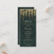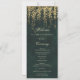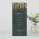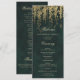 Uma ilustração com uma aquarela esbranquiçada de folhagem esmagadora e galhos de árvores em camadas de ouro (efeito digital, não folha real) sobre um fundo verde esmeralda, cintilante com luzes de fadas e poeira mágica, decora este cartão do programa de casamento outono de verão da primavera de inverno com um tema florestal encantado. Um elegante programa moderno de cerimônia de casamento para um casamento de conto de fadas. Perfeito para noivas que amam o cenário de conto de fadas, a floresta de fadas ou o tema do jardim de fadas e o verde esmeralda.