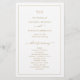 Simples mas elegante programa de casamento dourado com um layout mínimo e limpo com seu monograma no topo junto com uma borda. Este programa clássico de casamento com um sentimento tradicional é excelente para um casamento formal. Estes Programas de Casamento são impressos em folhas de papel para uma opção favorável ao orçamento.